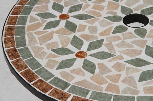 天板中央にはパラソルホールがあり、パラソルと併用してより快適なガーデンライフを楽しめます。